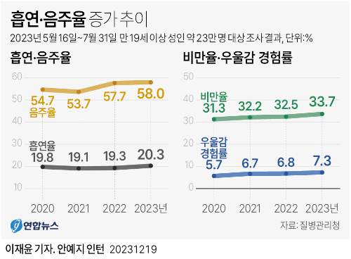 2023년 기준 우리나라 성인 흡연율은 20.3%입니다. 특히, 남성 흡연율은 36.6%로 OECD 국가 중 최고 수준을 기록했습니다. 지금 당장 담배를 끊는 것은 건강한 삶을 위한 첫걸음이 될 것입니다. 금연의 과정이 결코 쉽지는 않겠지만, 따라오는 놀라운 건강 효과를 생각하면 충분히 도전해 볼 만한 일입니다. 금연에 성공하여 더 건강하고 행복한 인생을 살아가시기 바랍니다.