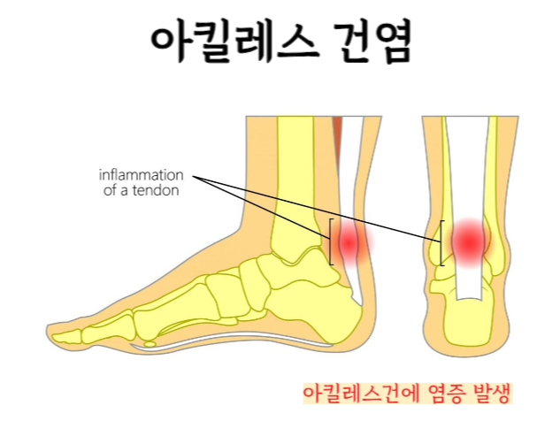 아킬레스건은 종아리 근육과 발뒤꿈치뼈를 연결하는 힘줄입니다. 이 힘줄에 염증이 생기면 발뒤꿈치 통증이 발생할 수 있습니다. 아킬레스건염은 주로 과도한 운동이나 갑작스런 운동량 증가로 인해 발생합니다.